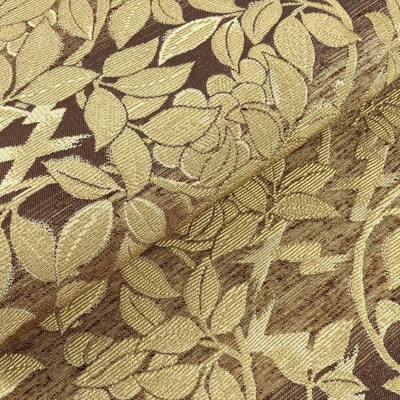 【色柄】金 茶 セミフォーマル 輪奈織 植物文 金糸 色糸 全通