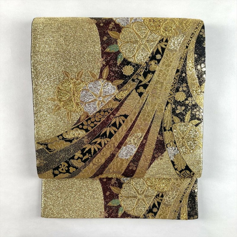 まばゆいばかりの金色を基調に、日本の伝統的な吉祥文様が優雅に織り上げられています。