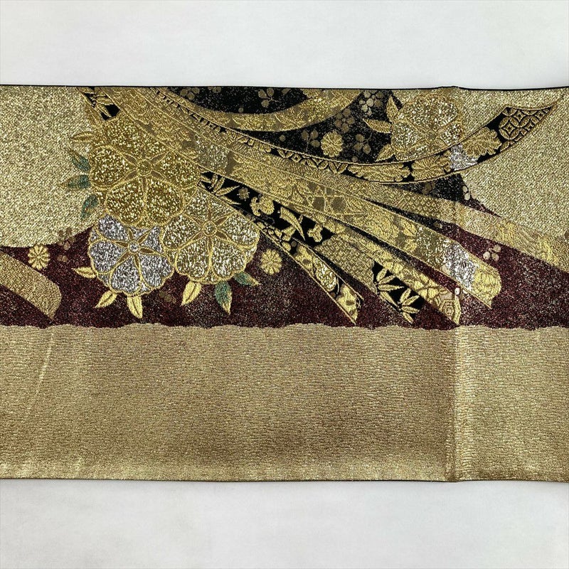 (中古)振袖用袋帯 金 セミフォーマル フォーマル 六通 太箔 金糸 熨斗 桜 絹