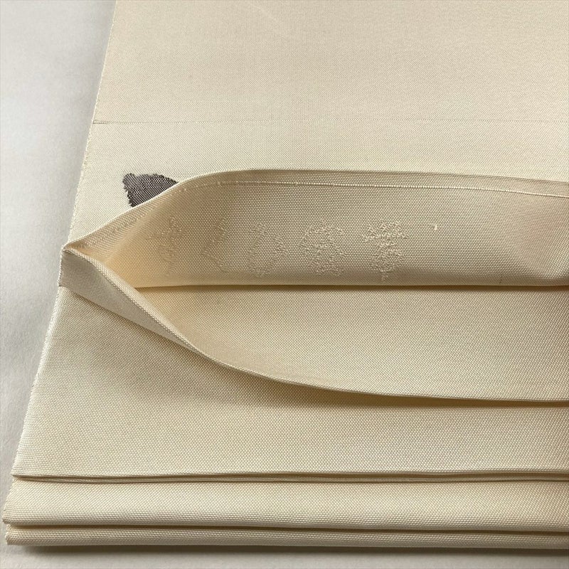 (中古)袋帯 アイボリー 生成 カジュアル 六通 織り 色糸 一枝の花 絹