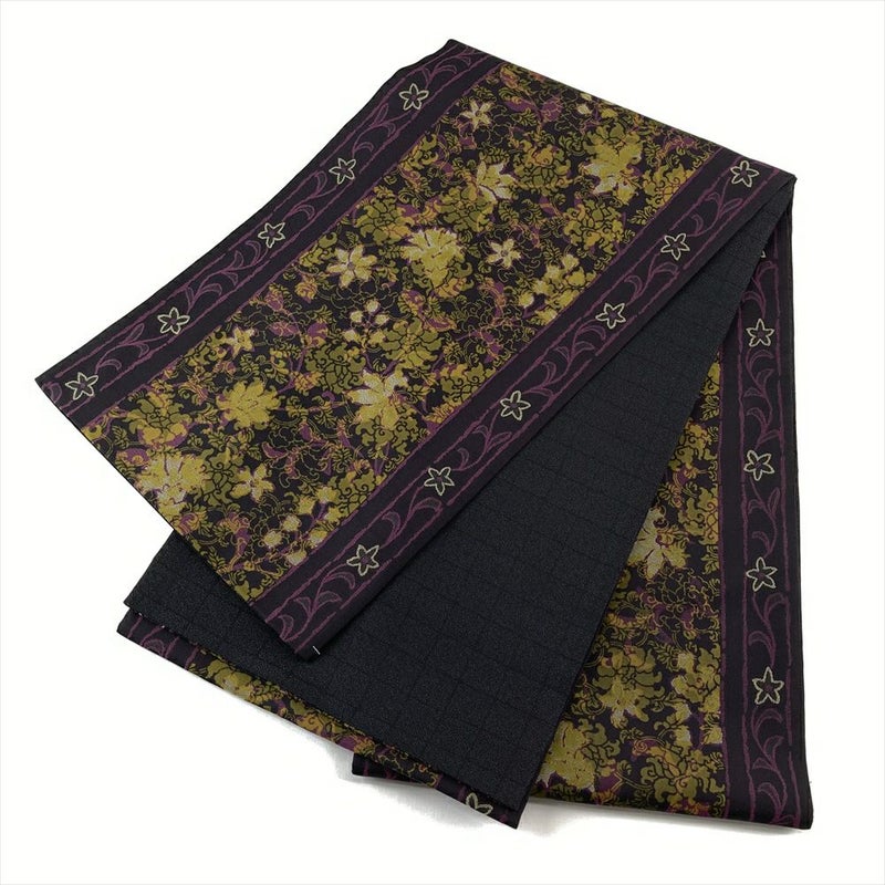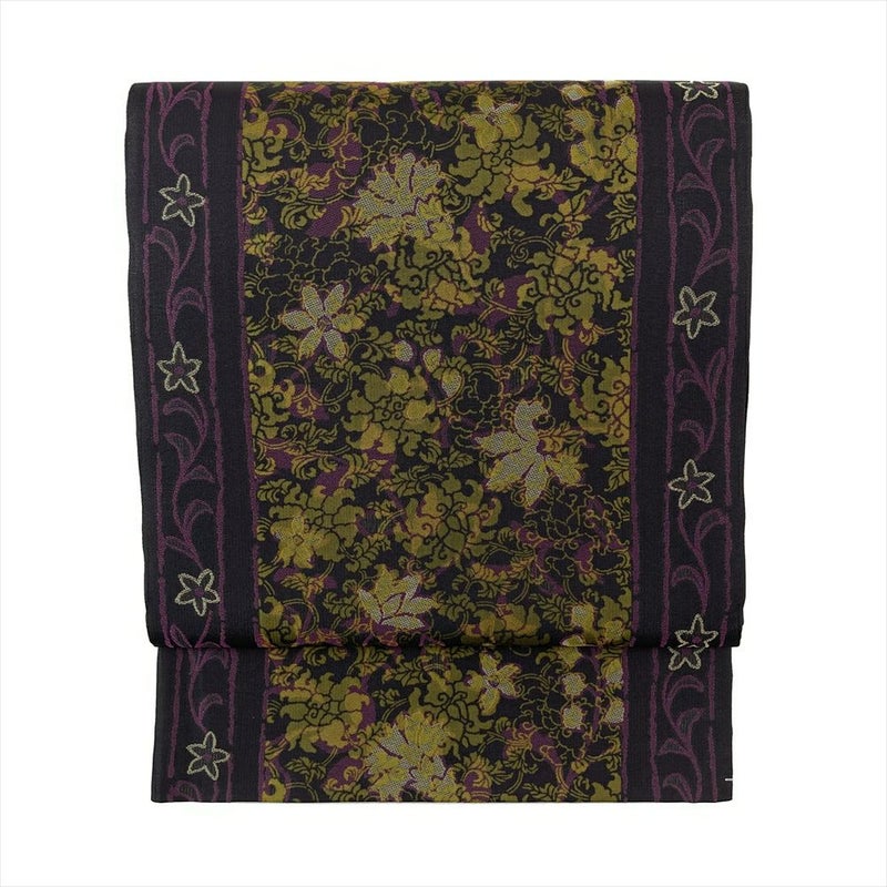 【色柄】濃紫 黒 カジュアル 花唐草文 織り 色糸 全通