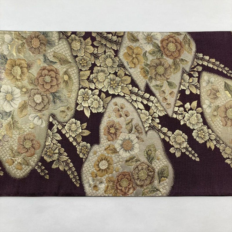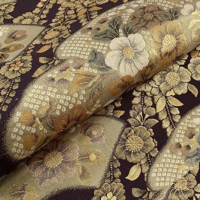 【色柄】紫 金 セミフォーマル 扇面 雲 辻が花 引き箔 六通