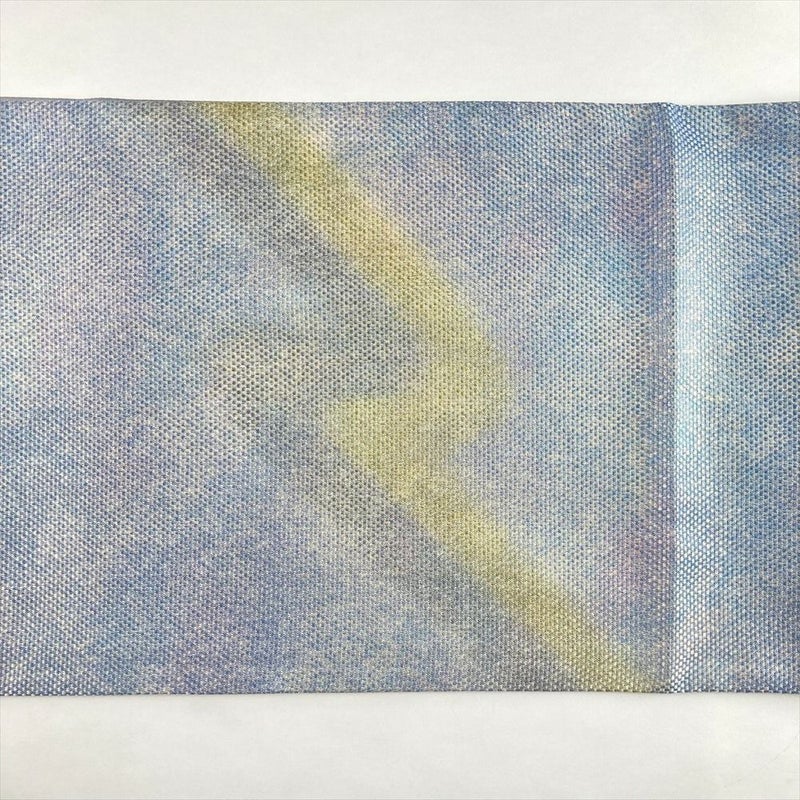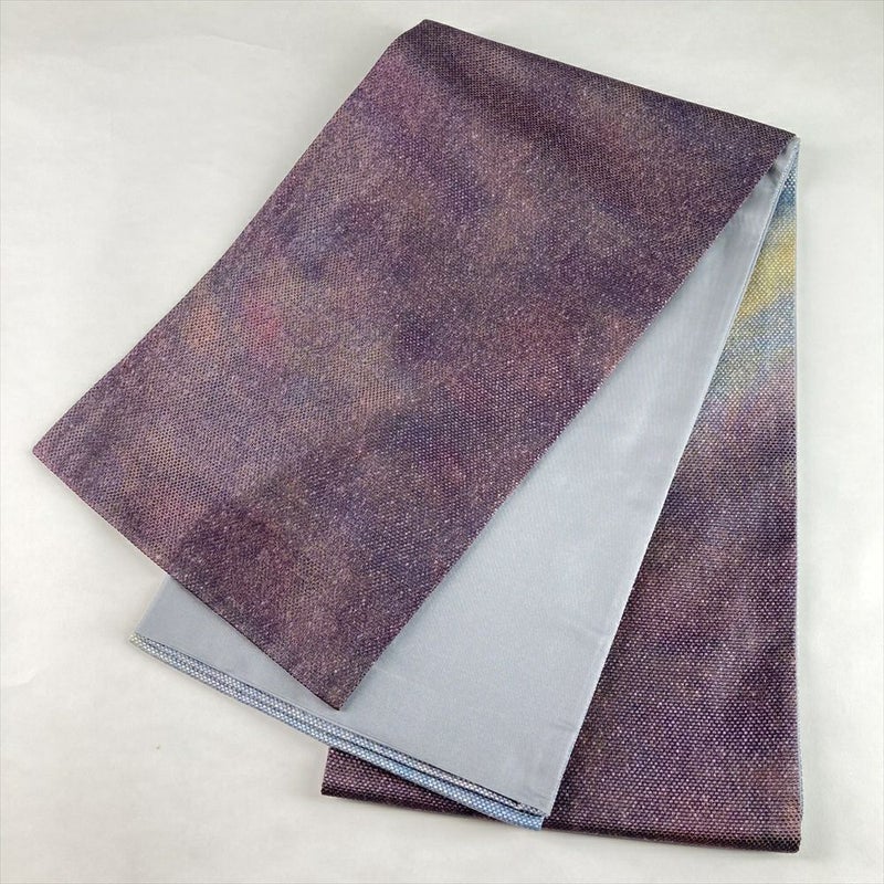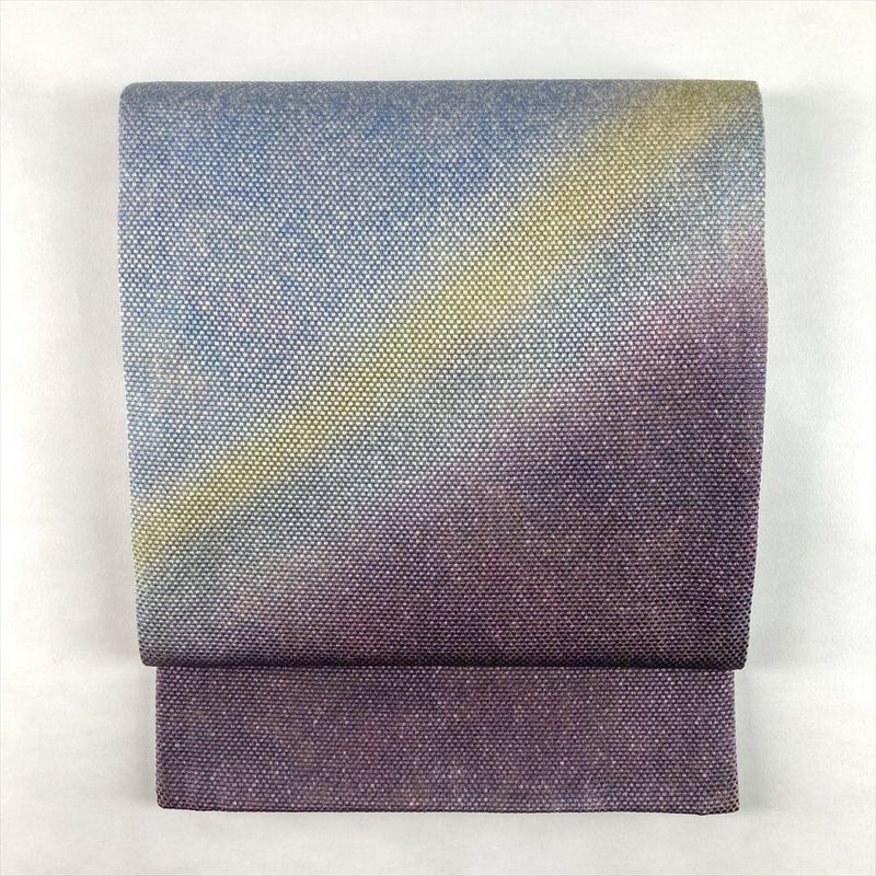 (中古)袋帯 青 紫 カジュアル セミフォーマル 六通 カラー箔 色糸 グラデーション 絹