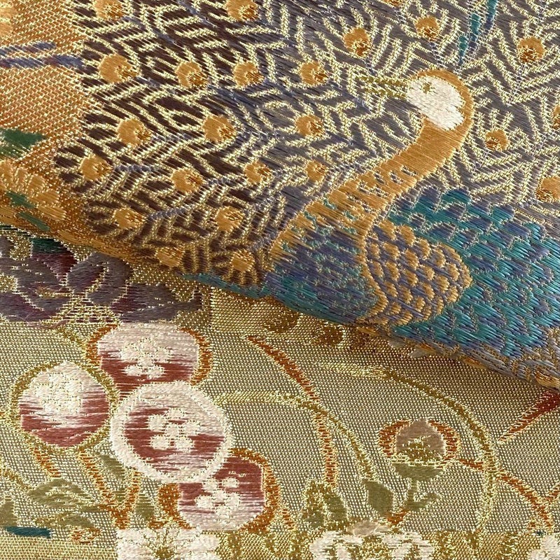 【色柄】金 フォーマル 光琳孔雀図 引き箔 金糸 六通