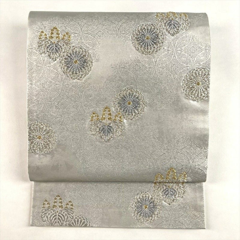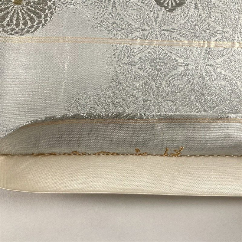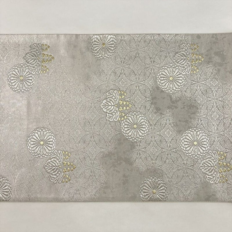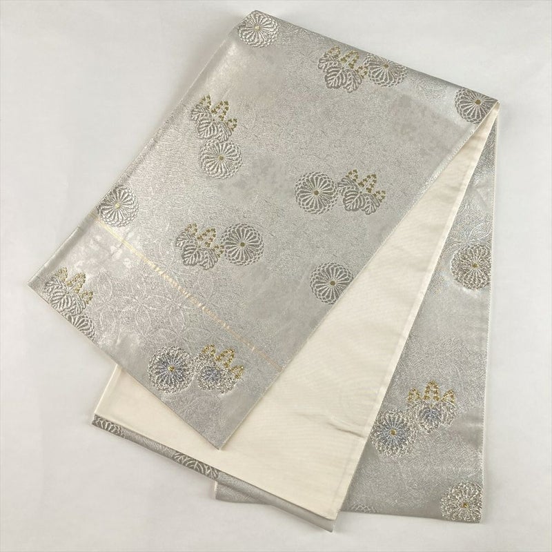 (中古)袋帯 銀 フォーマル 六通 引き箔 金糸 銀糸 菊 桐 絹