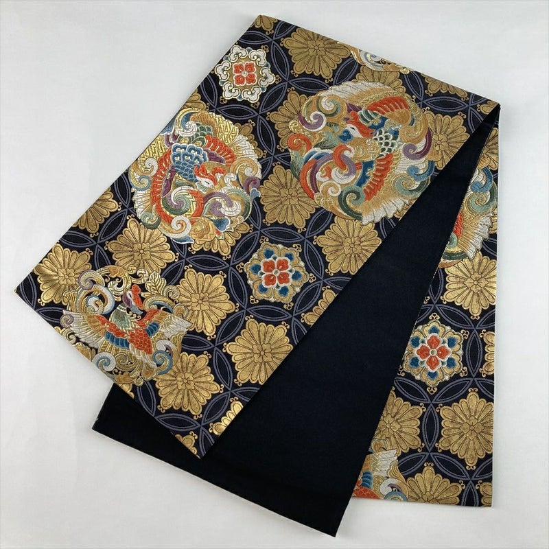 シックな黒地に、格調高い鳳凰華文を織り出した袋帯です。