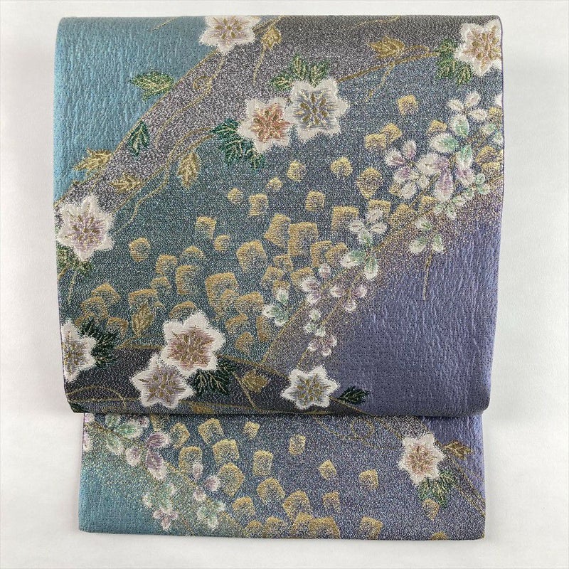 美しい寒色系の色彩で織りなされた、上品で華やかな袋帯です。