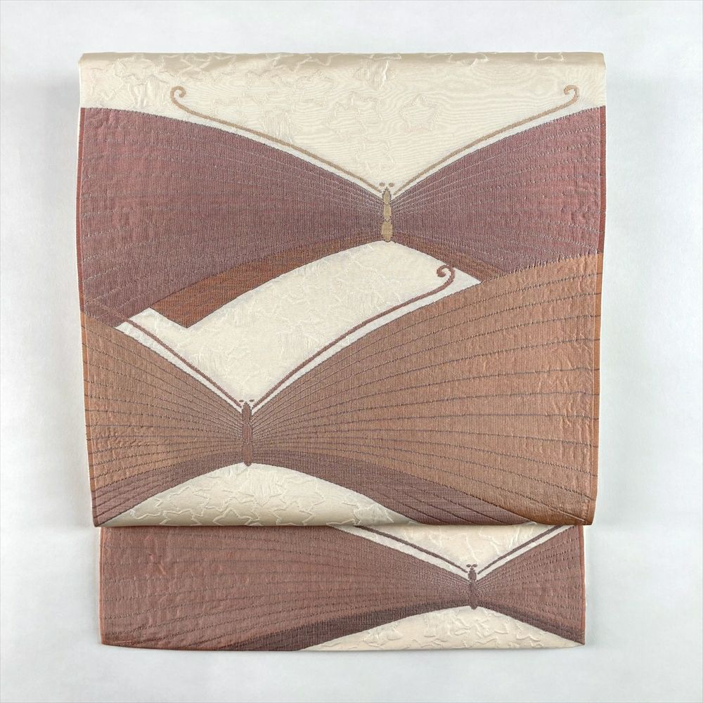 (中古)袋帯 クリーム アイボリー カジュアル 六通 織り 色糸 蝶 絹