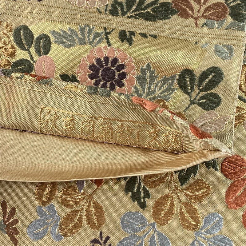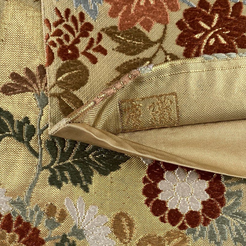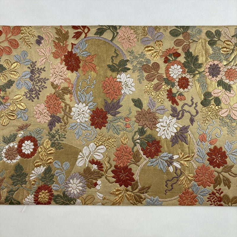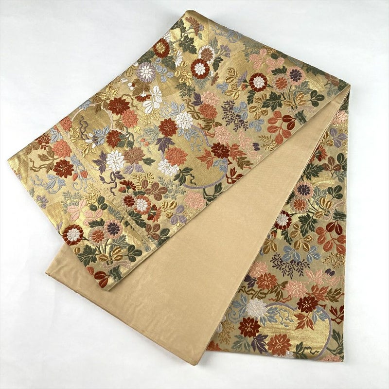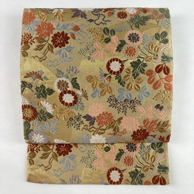 (中古)袋帯 金 セミフォーマル フォーマル 六通 唐織 四季花 団扇文 絹