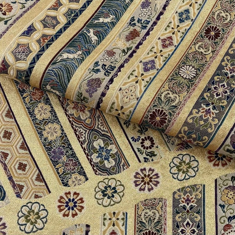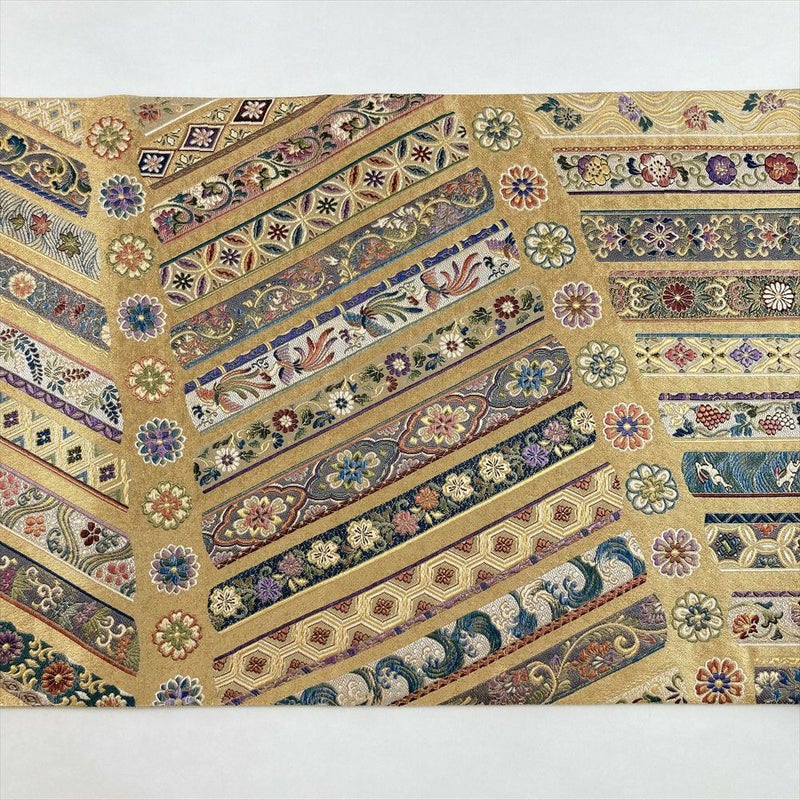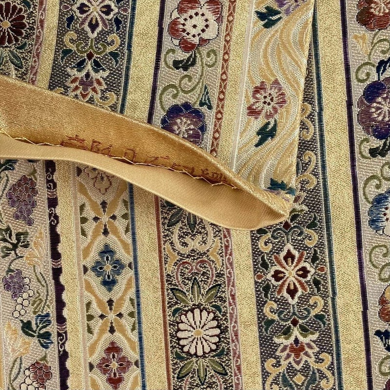 艶やかな金地に、繊細な織りで表現された鬘帯文様が、圧倒的な存在感を放ちます。