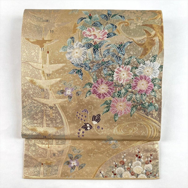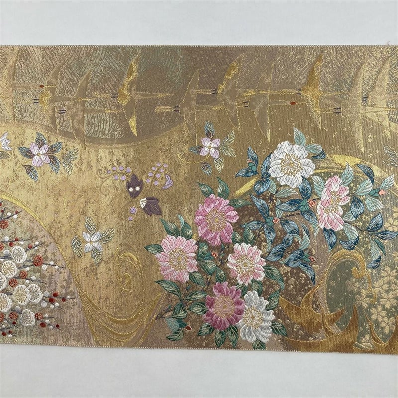 【色柄】金 フォーマル 花 鶴 引き箔 金糸 六通