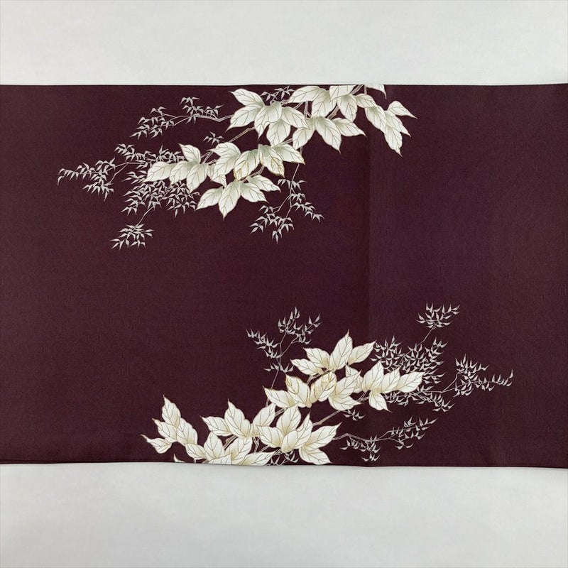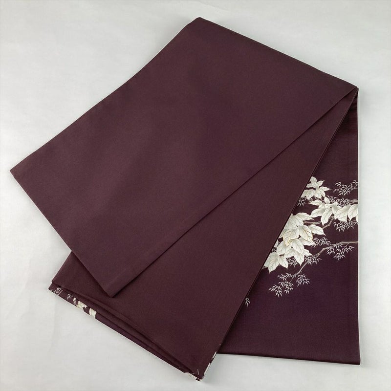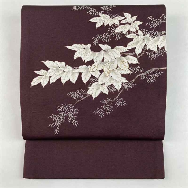 (中古)袋帯 小豆 赤紫 カジュアル 六通 塩瀬 染め 枝葉 絹