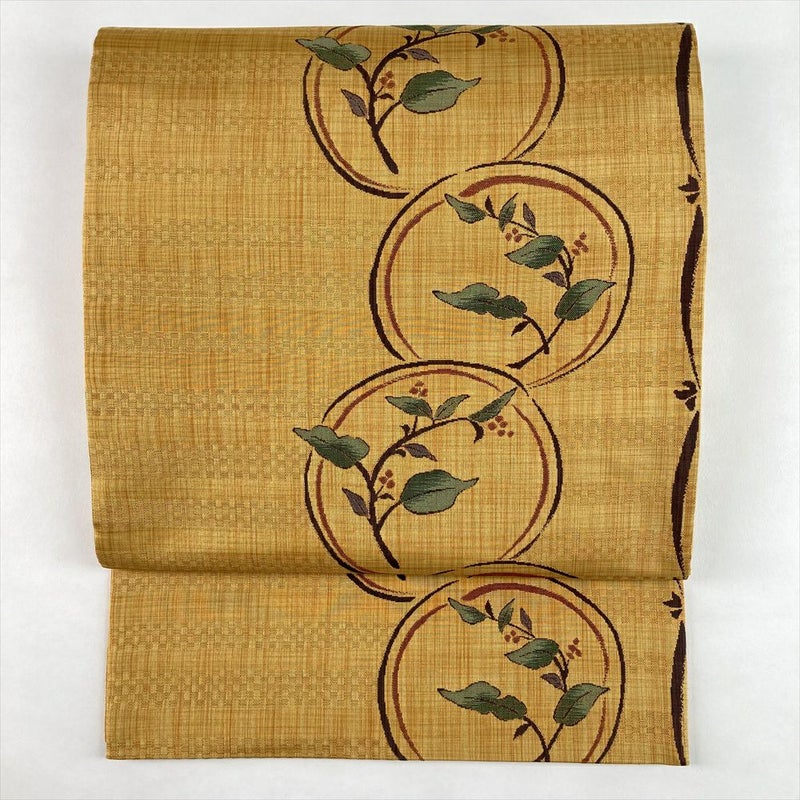 (中古)袋帯 濃黄 カジュアル 六通 織り 色糸 丸に草花 絹