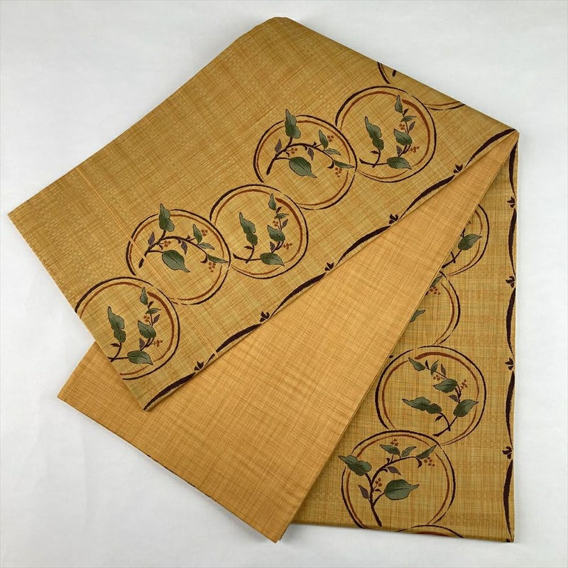 【色柄】濃黄 カジュアル 丸に草花 織り 色糸 六通