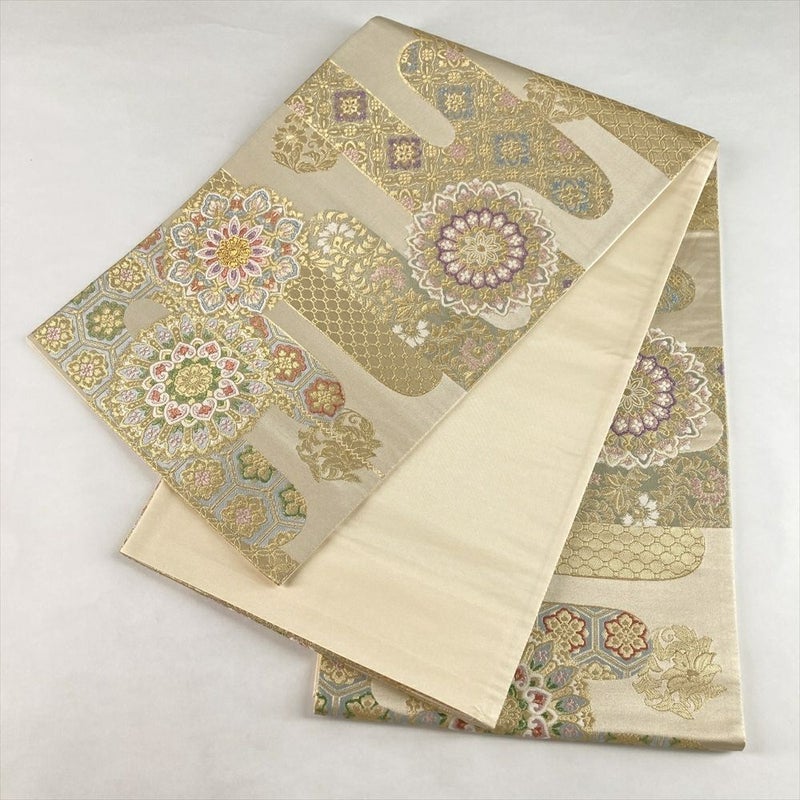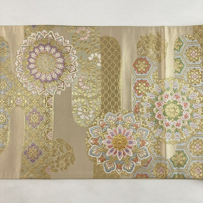 (中古)袋帯 金 セミフォーマル フォーマル 六通 織り 華文 絹