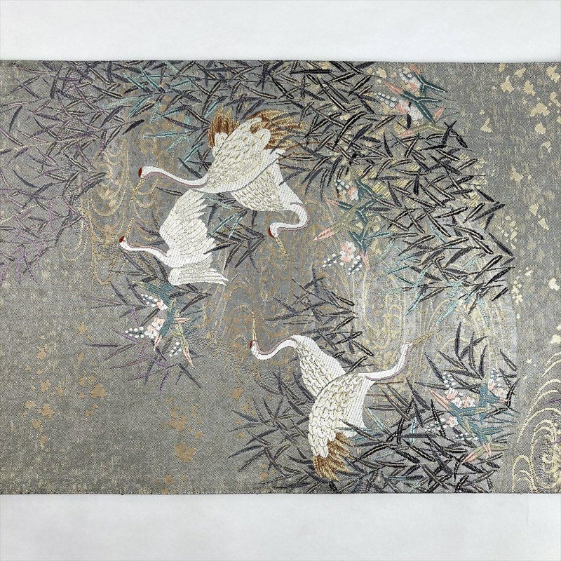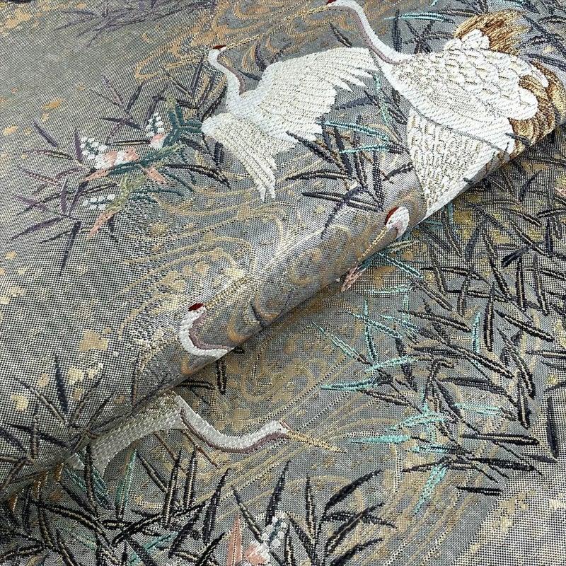 葦や沢潟が茂る水辺に、鶴がそっと佇む意匠は、自然の静けさと気品を感じさせ、着姿に奥行きと落ち着いた華やぎを添えてくれます。