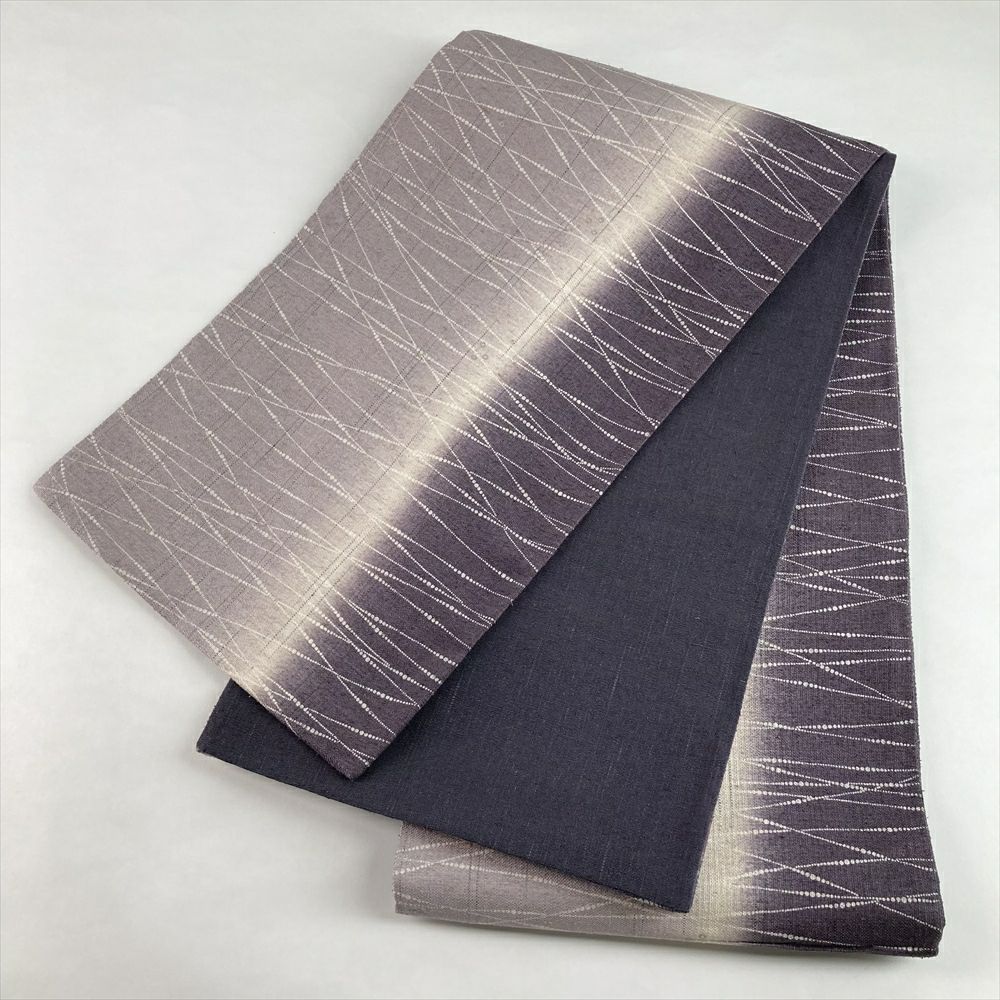 帯全体に施された大胆な横縞が、モダンで洗練された印象を与えます。