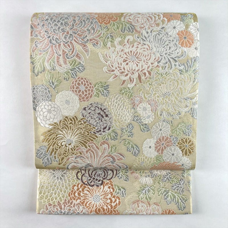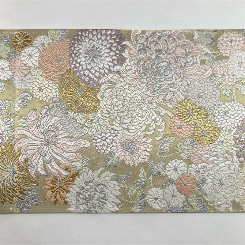 淡い色使いで丁寧に織り上げられたのは、優美な菊の文様。