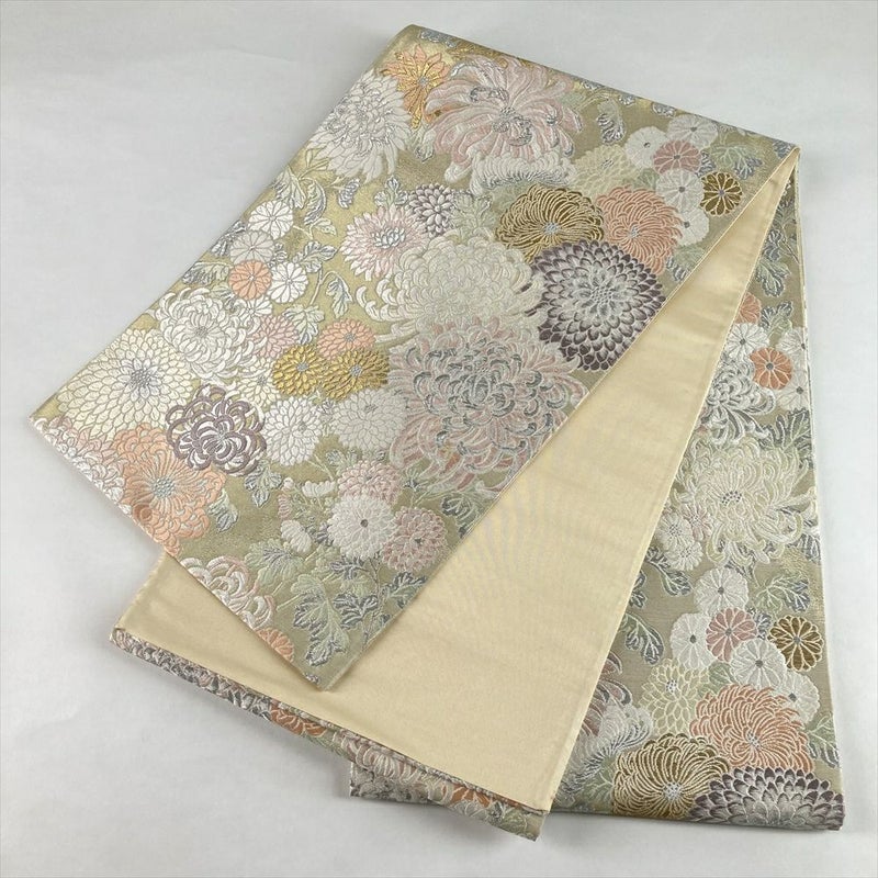 (中古)袋帯 金緑 セミフォーマル フォーマル 全通 金糸 銀糸 色糸 菊尽くし 絹