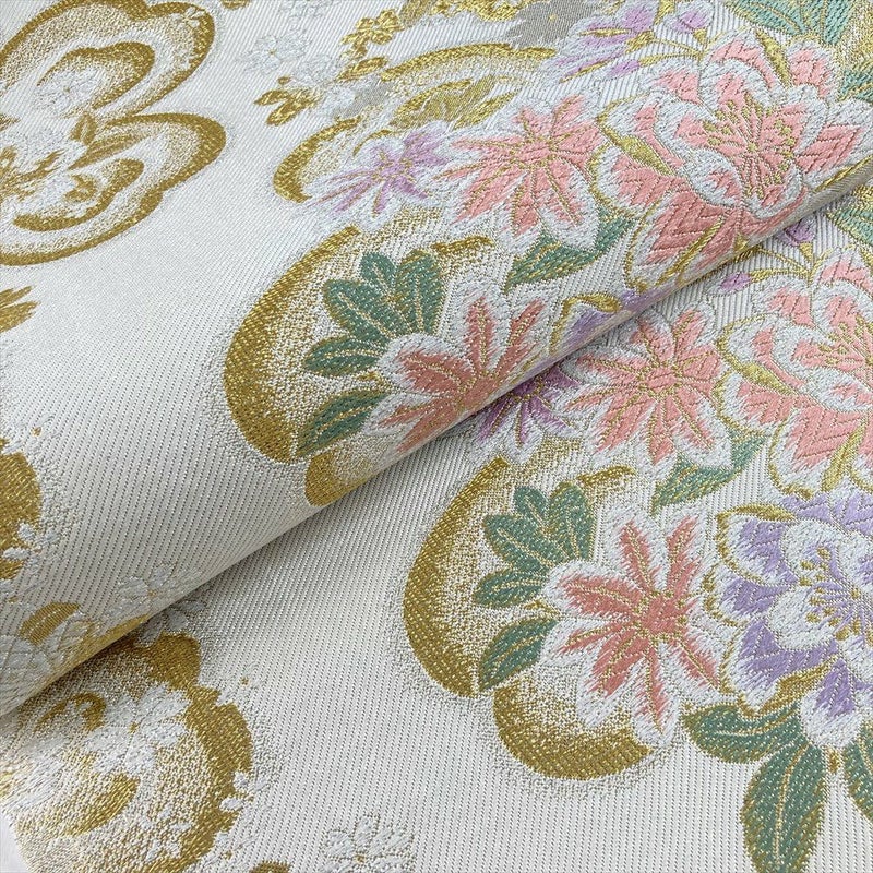 アイボリーの地に、金糸と銀糸の煌めきが美しく映え、着付けもしやすい一本です。