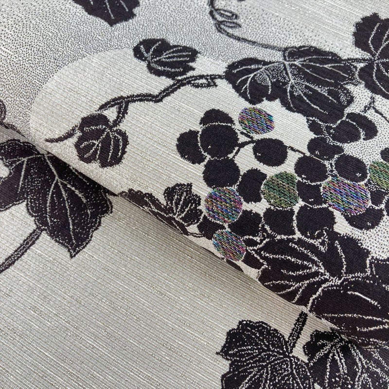 西陣「とみや」謹製。白茶に蔓葡萄の洒落袋帯