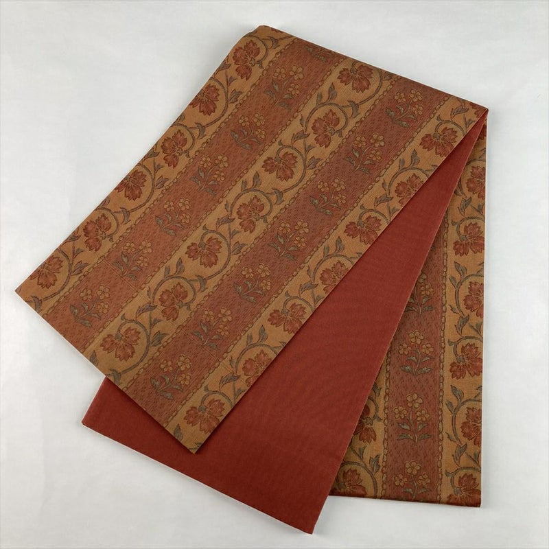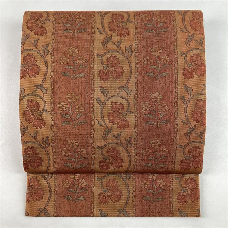 (中古)袋帯 赤茶 カジュアル 六通 織り オリエンタル草花 絹