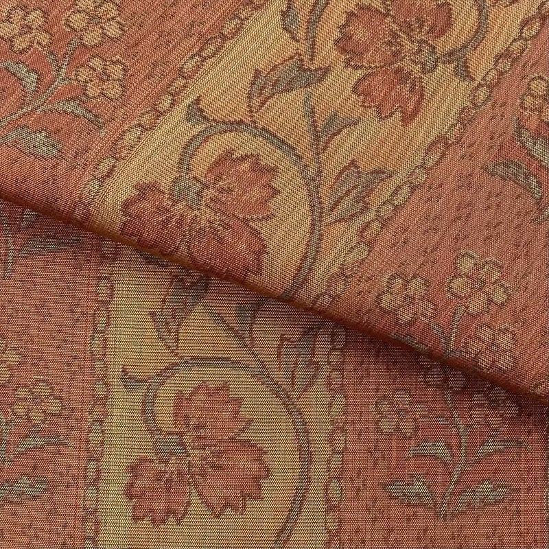 【色柄】赤茶 カジュアル オリエンタル草花 織り 六通