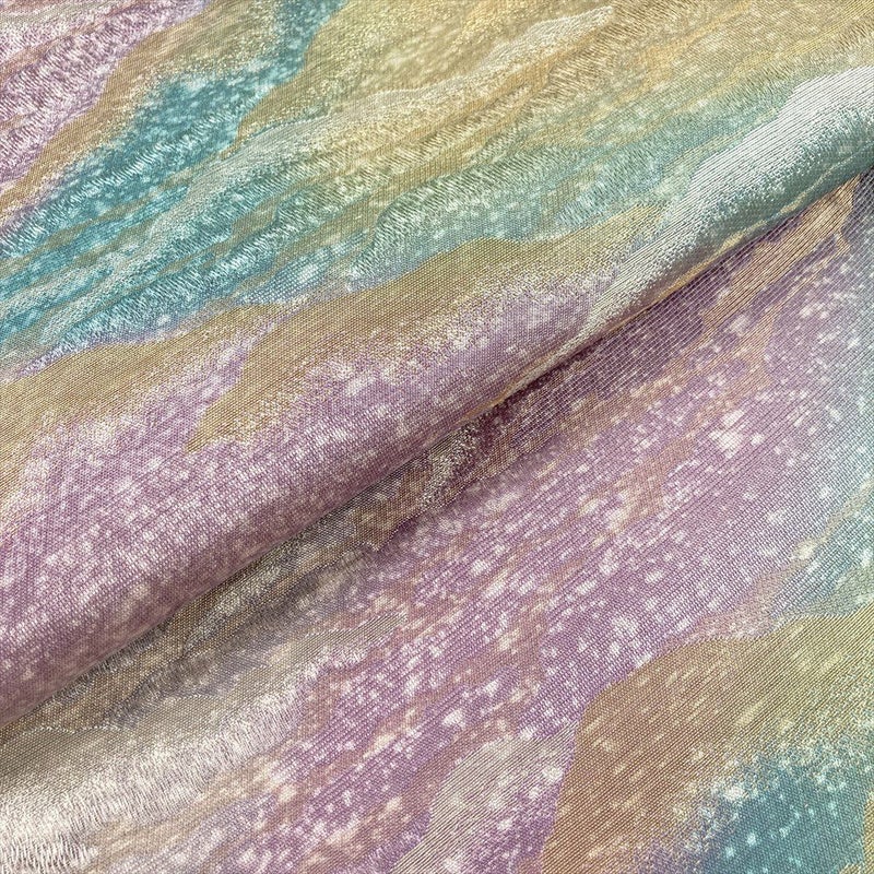 【色柄】紫 緑 黄 マルチカラー セミフォーマル 霞 山並み 織り 全通