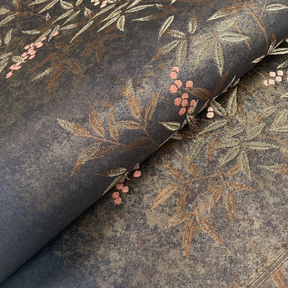 【色柄】灰青 グレー 金 セミフォーマル 南天 織り 六通