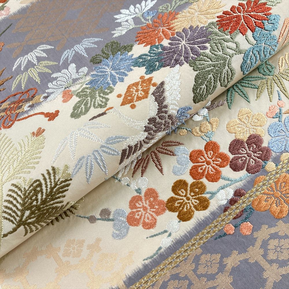慶賀の極み。松竹梅と鶴、宝尽くしの唐織袋帯