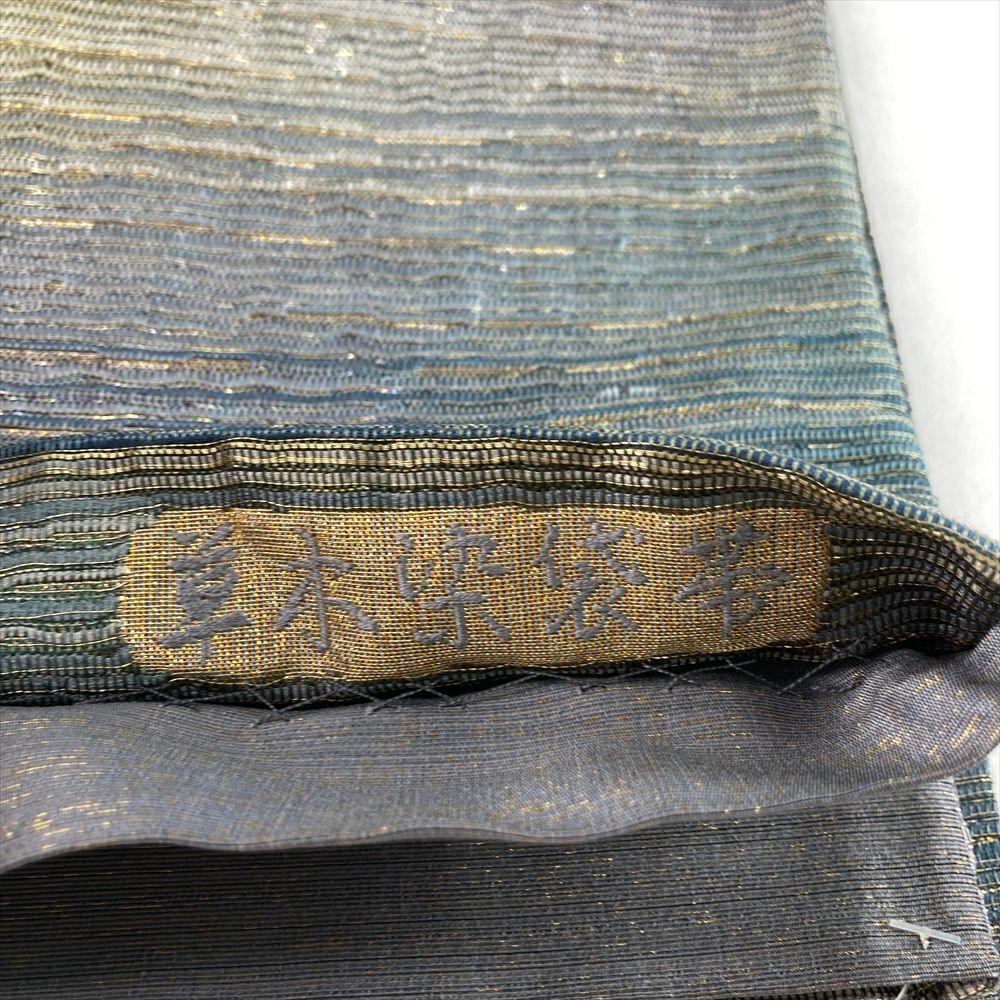(中古)袋帯 青緑 セミフォーマル 全通 纐纈暈繝錦 草木染 織り 横段 ぼかし 絹