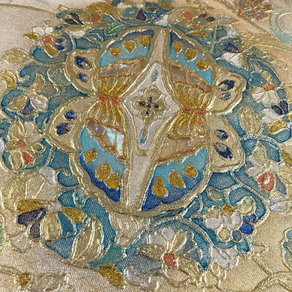 地色全体を覆う金色の輝きと、螺鈿調の神秘的な光沢が、見る人の目を釘付けにします。