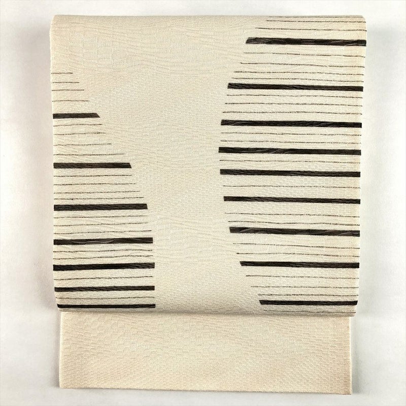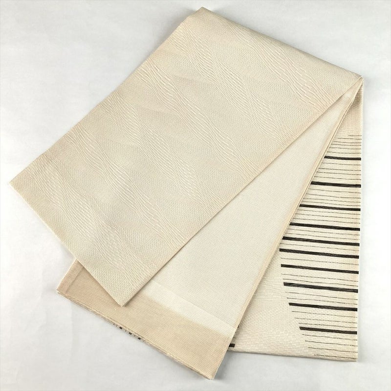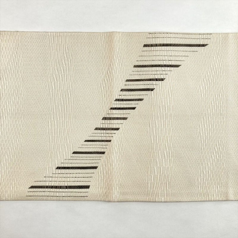(中古)夏袋帯 生成り クリーム カジュアル 六通 眼鏡織 染め 抽象柄 絹