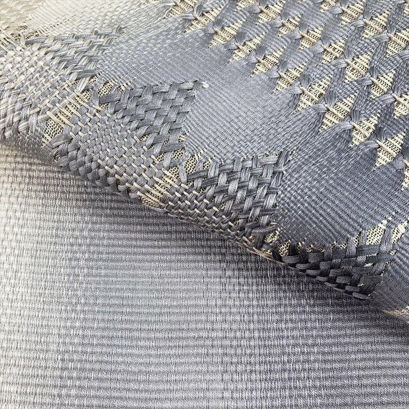 糸の交差で柄を表現する組織織の複雑な織技。この技法によって、平面的な染め帯とは違う、深みのある表情が生まれています。