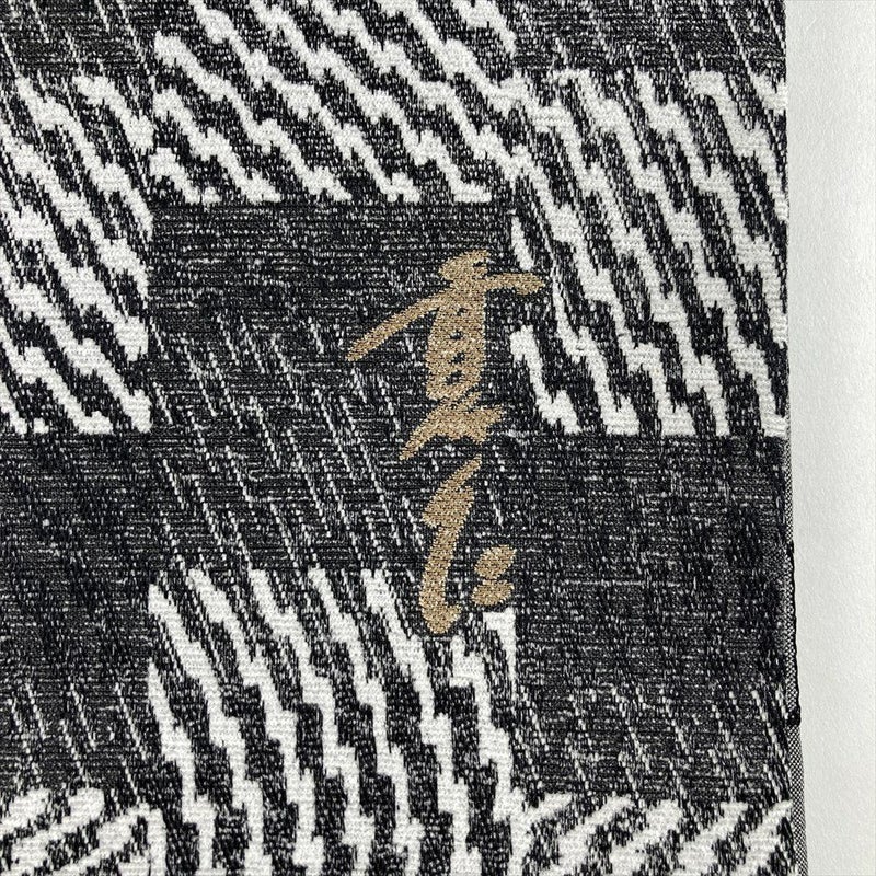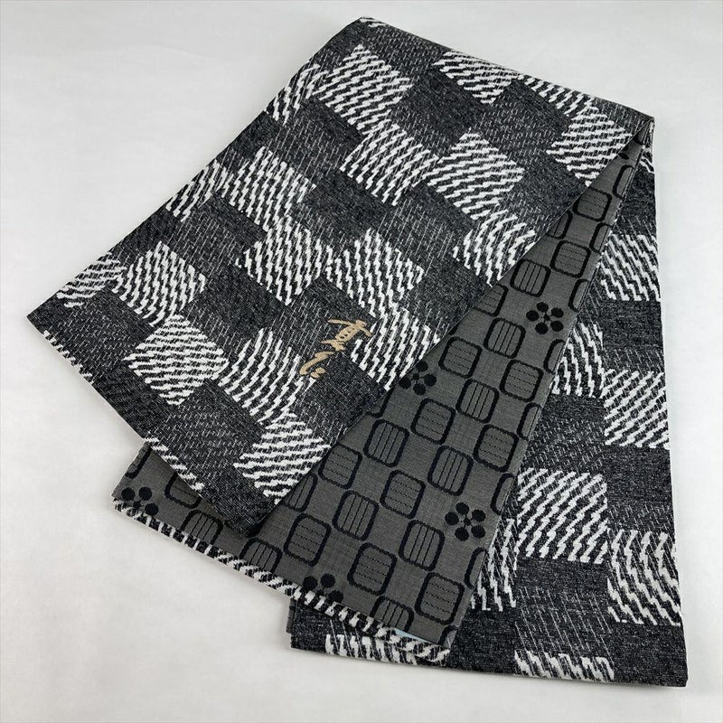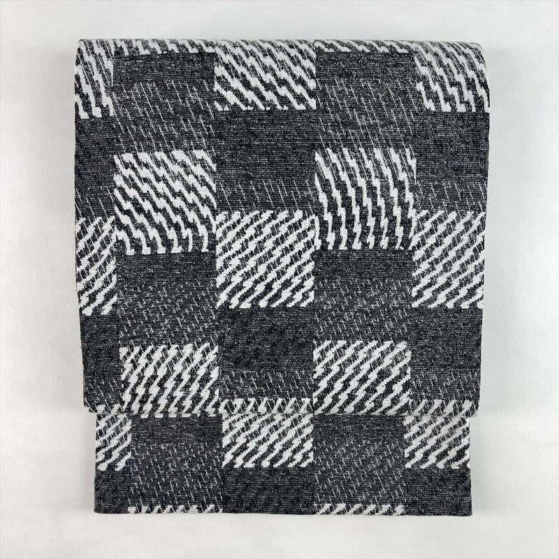 黒と白のコントラストが際立つモダンな変わり格子柄の袋帯。