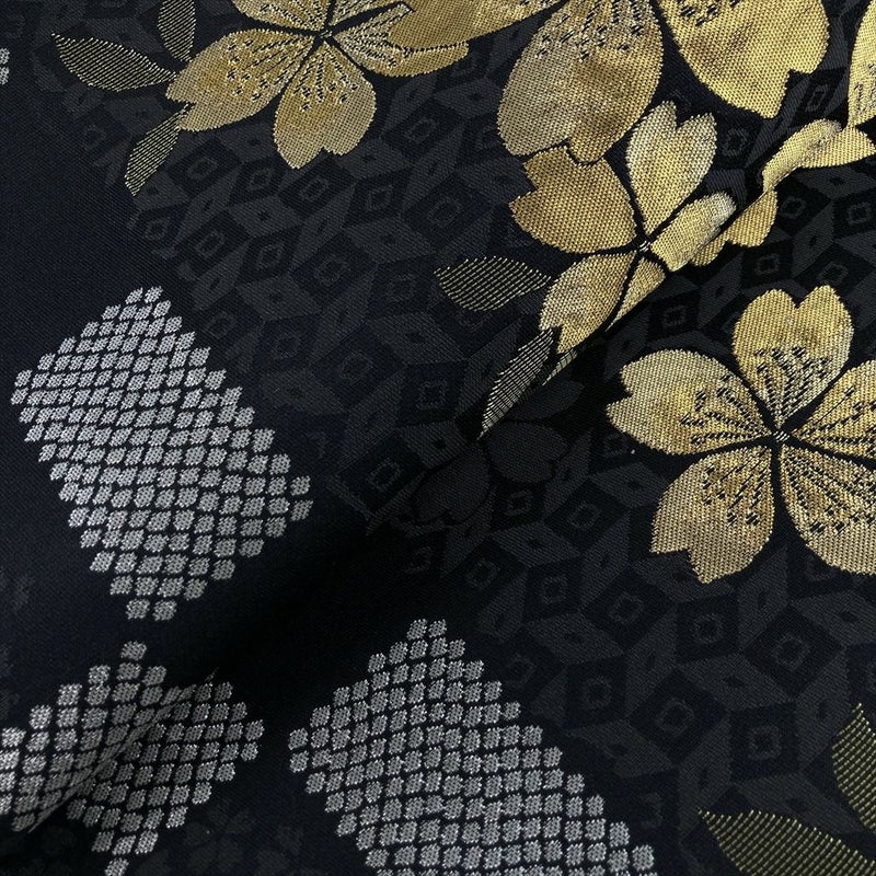 【色柄】黒 フォーマル セミフォーマル 桜 市松 織り 金糸 六通