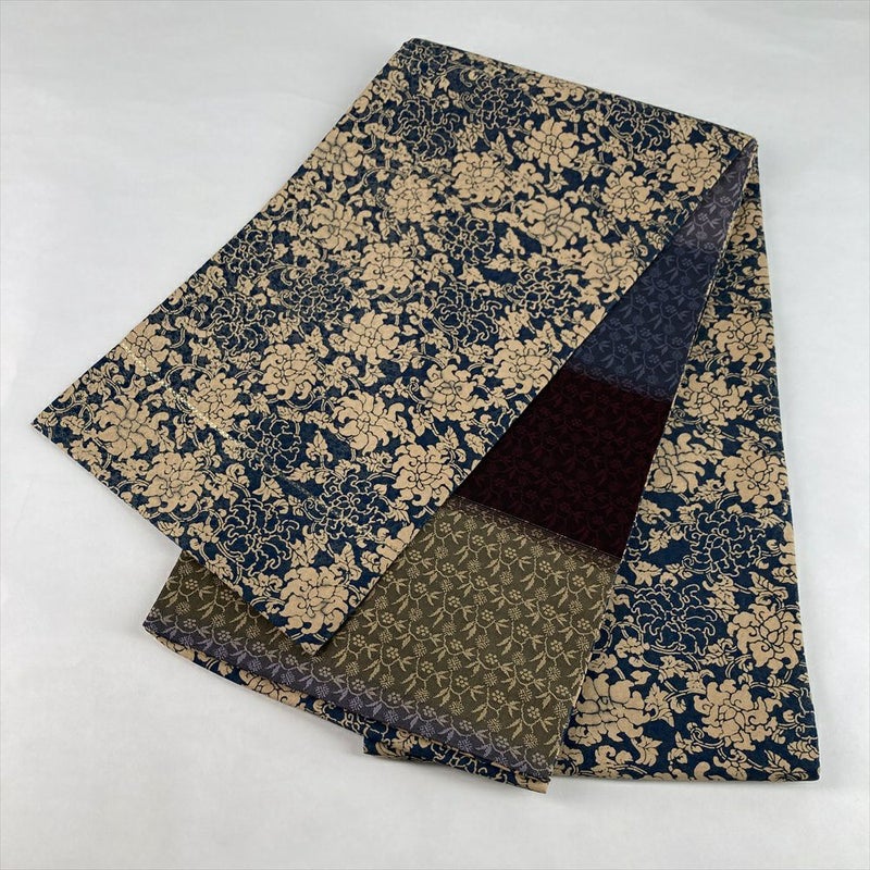 【色柄】紺 ベージュ カジュアル 唐草 織り 全通