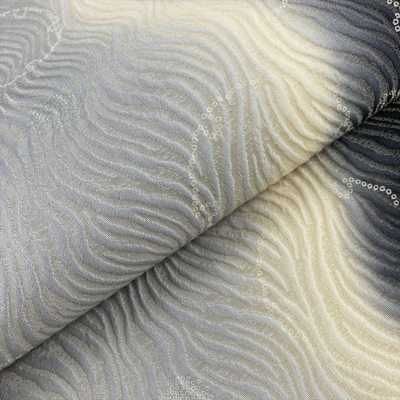 【色柄】グレー 黒 カジュアル セミフォーマル 波 雪輪 ぼかし 織り 金糸 全通