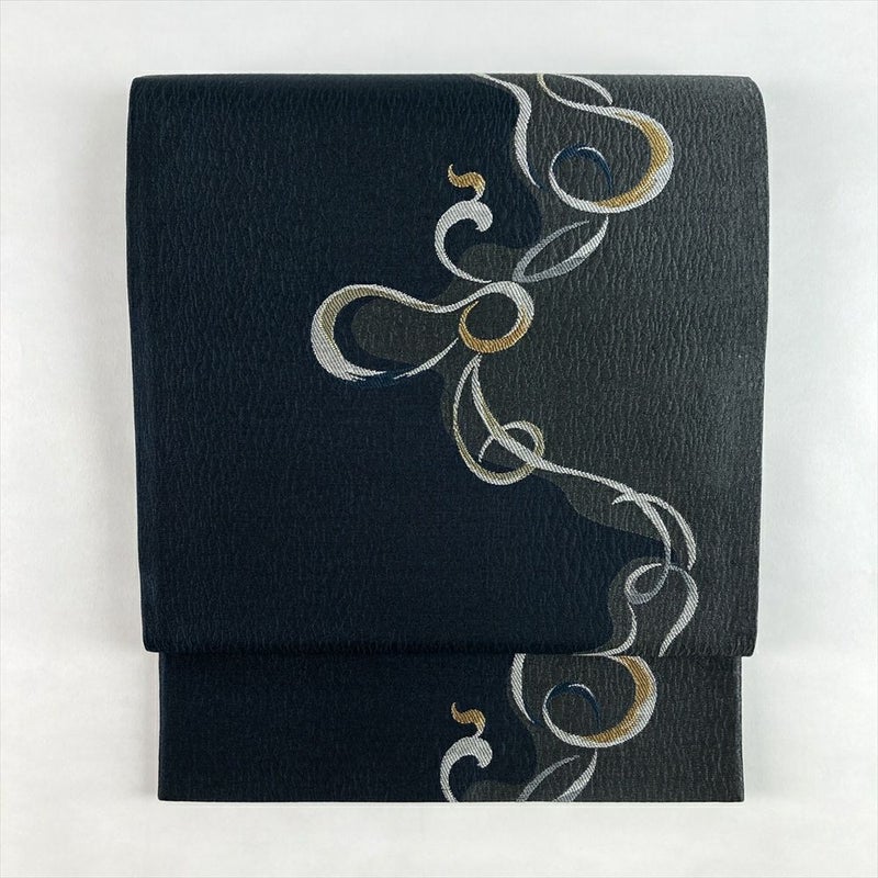 (中古)袋帯 紺 カジュアル 六通 織り 瓢箪 ひょうたん 絹