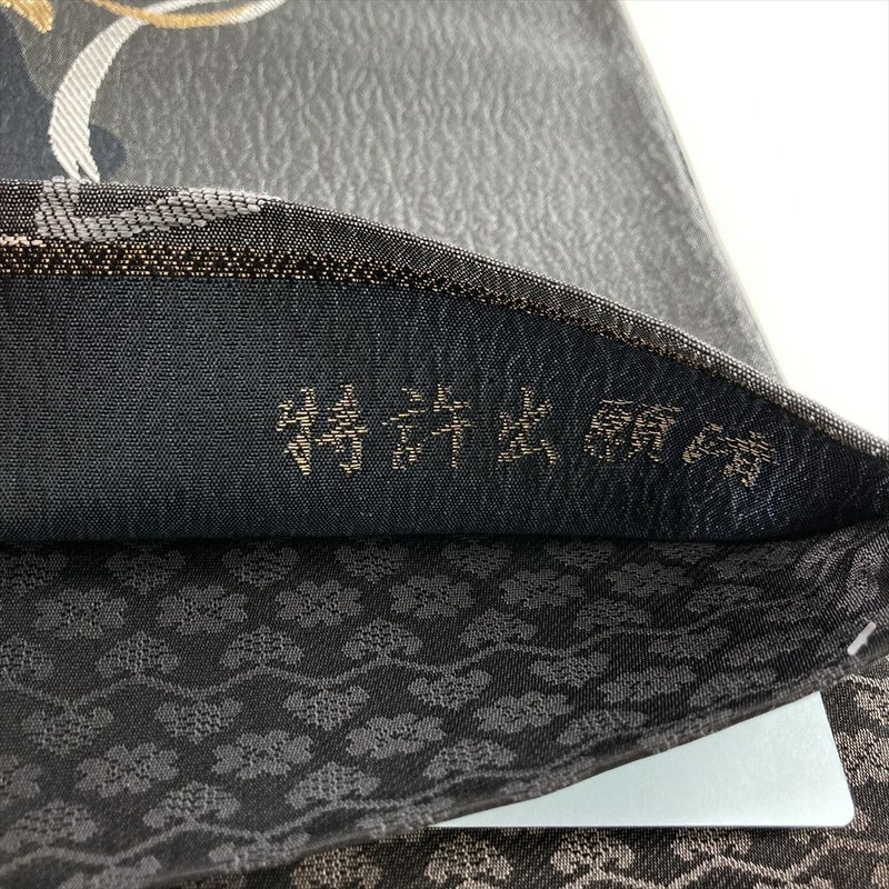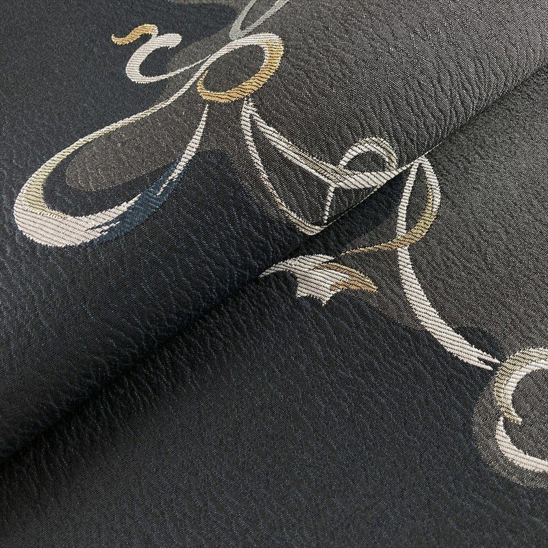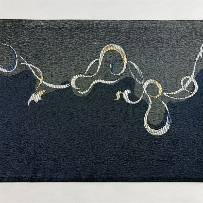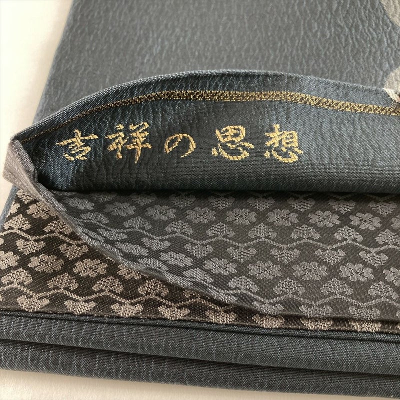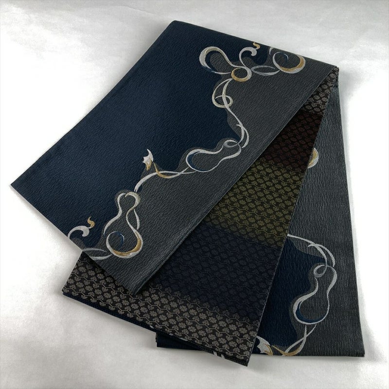 落ち着いた紺地に、織りで表現されたひょうたん模様が上品に浮かぶ袋帯。