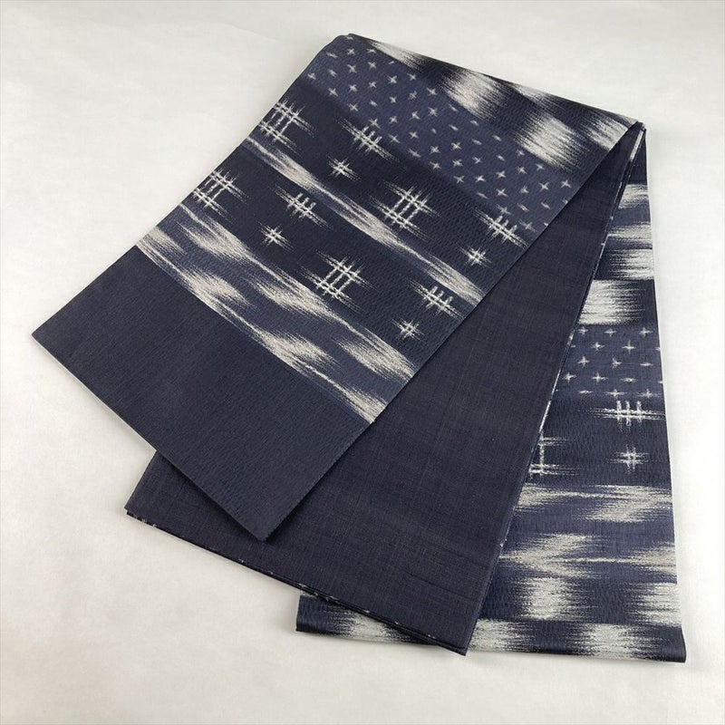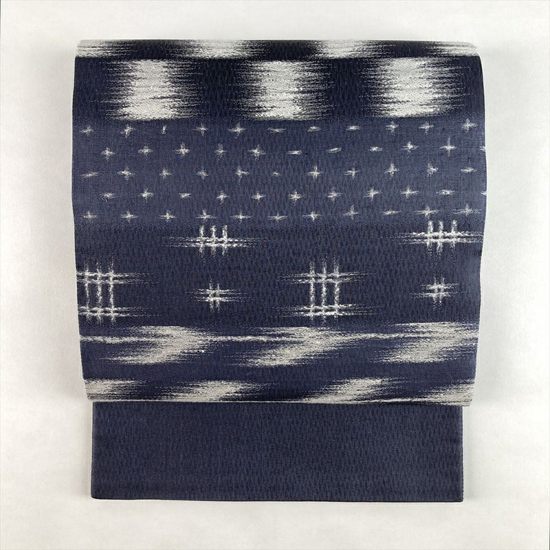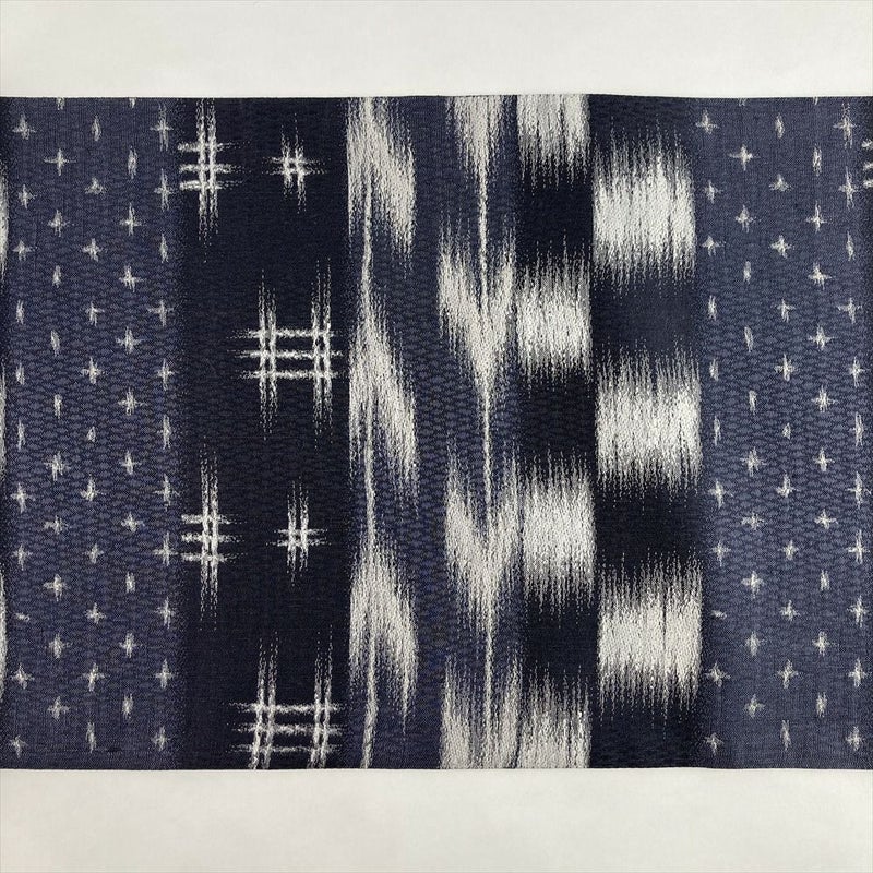 (中古)袋帯 紺 カジュアル 六通 織り 絣 変わり井桁 絹