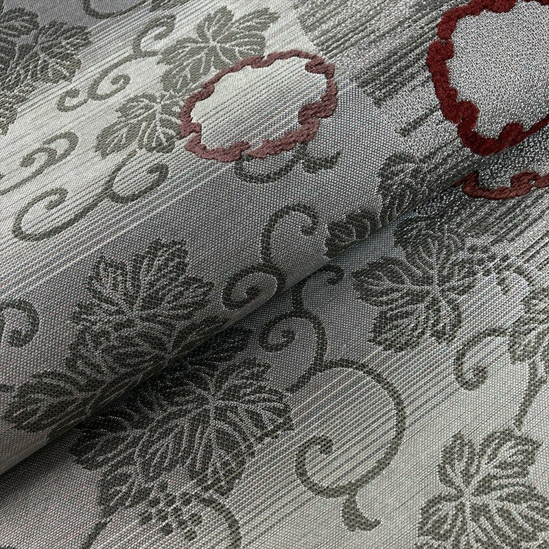 【色柄】グレー カジュアル 葡萄唐草 モール織りの雪輪 織り 六通
