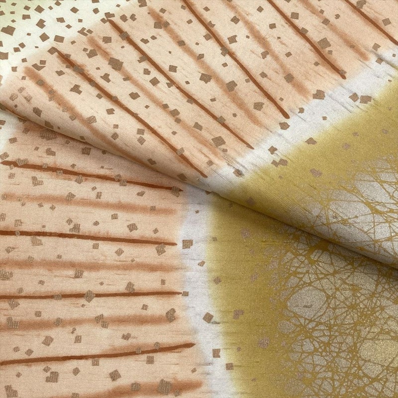 【色柄】芥子 黄 薄茶 カジュアル 干割れ 抽象柄 染め 金彩 全通