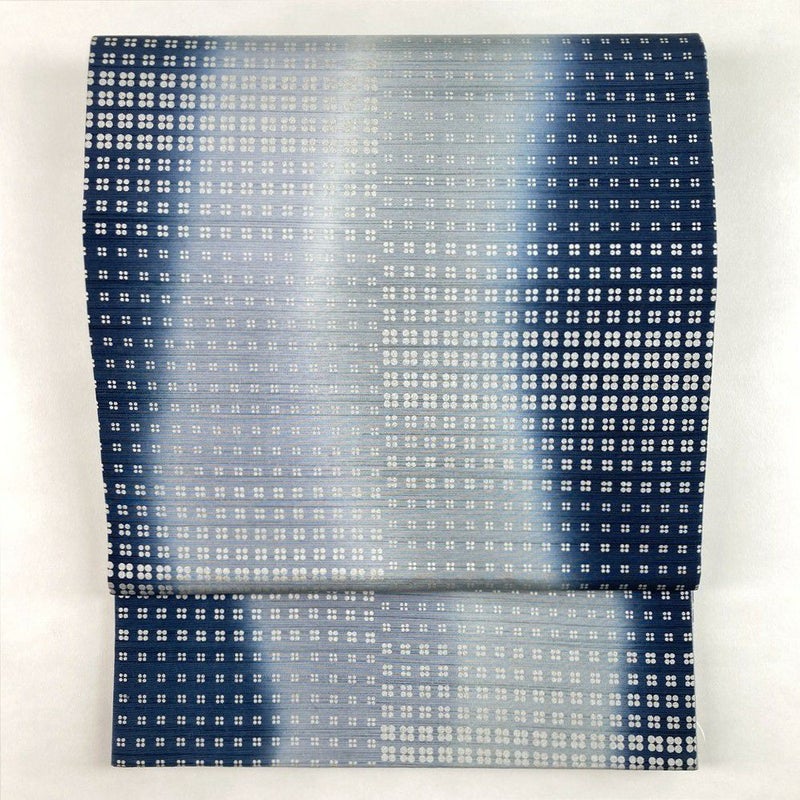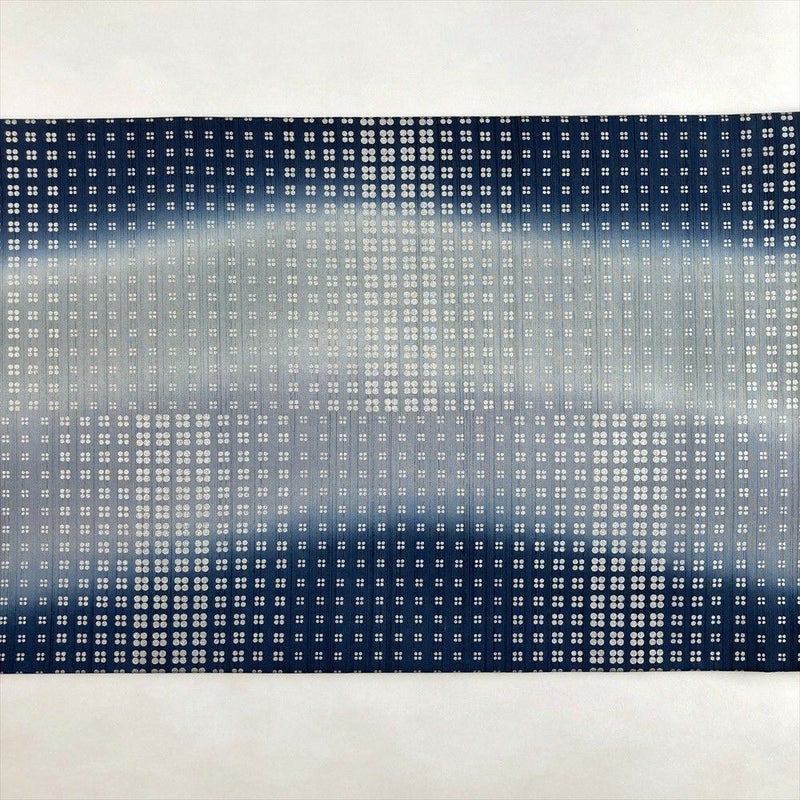 (中古)袋帯 群青 グレー カジュアル 全通 ぼかし染め 銀彩 水玉 幾何学 絹