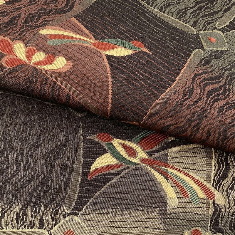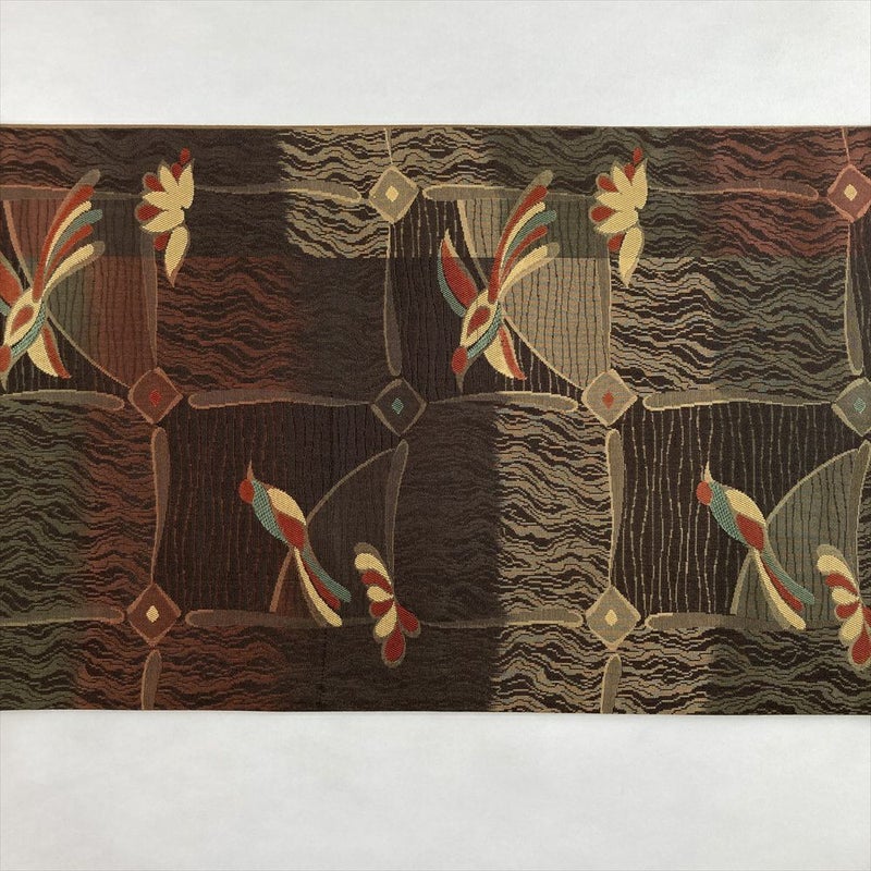 【色柄】焦げ茶 カジュアル 鳥 花 織り 全通