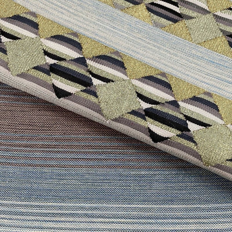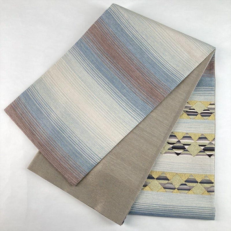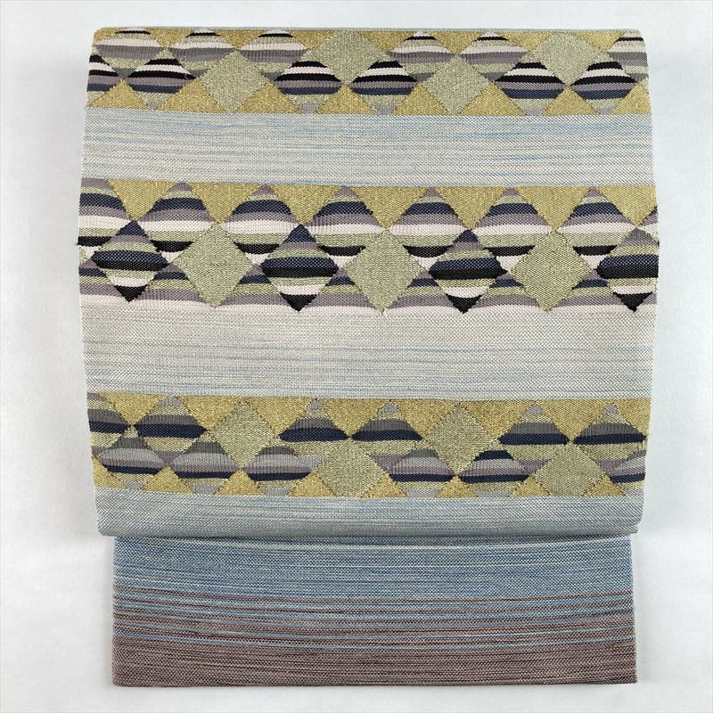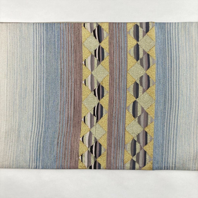 【色柄】青 生成り カジュアル 横段 菱 織り金糸 銀糸 六通
