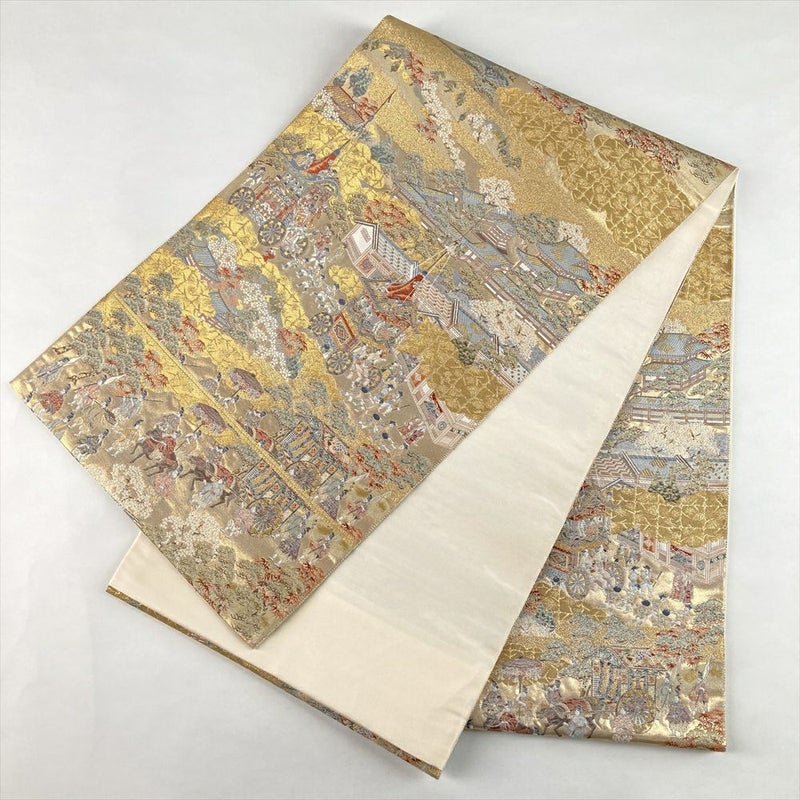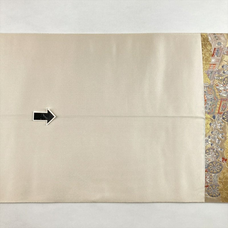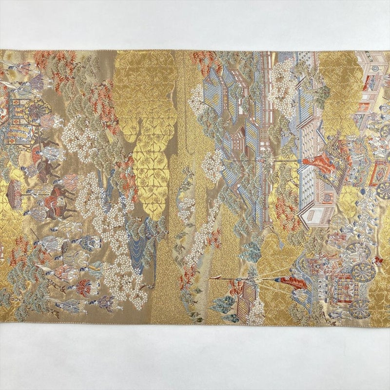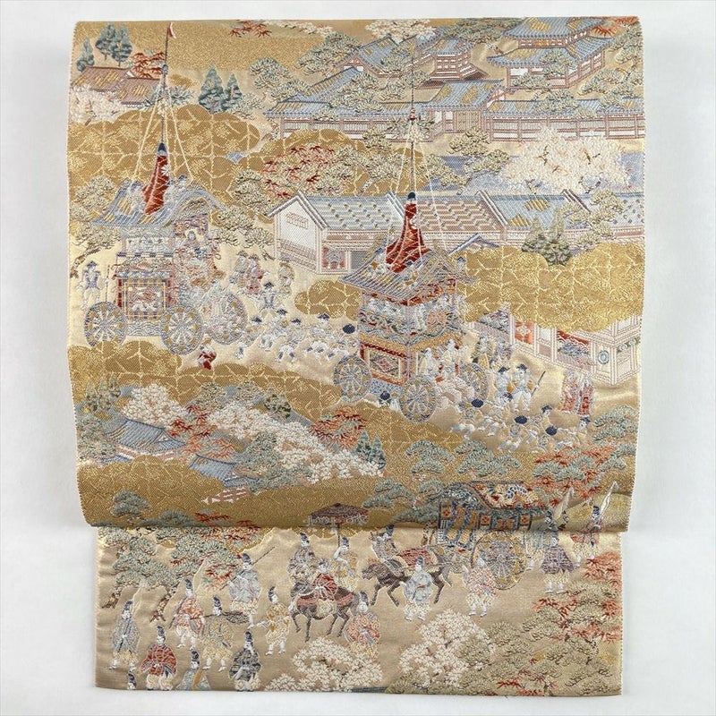 (中古)袋帯 金 セミフォーマル フォーマル 六通 織り 引き箔 金糸 洛中 祭礼図 絹