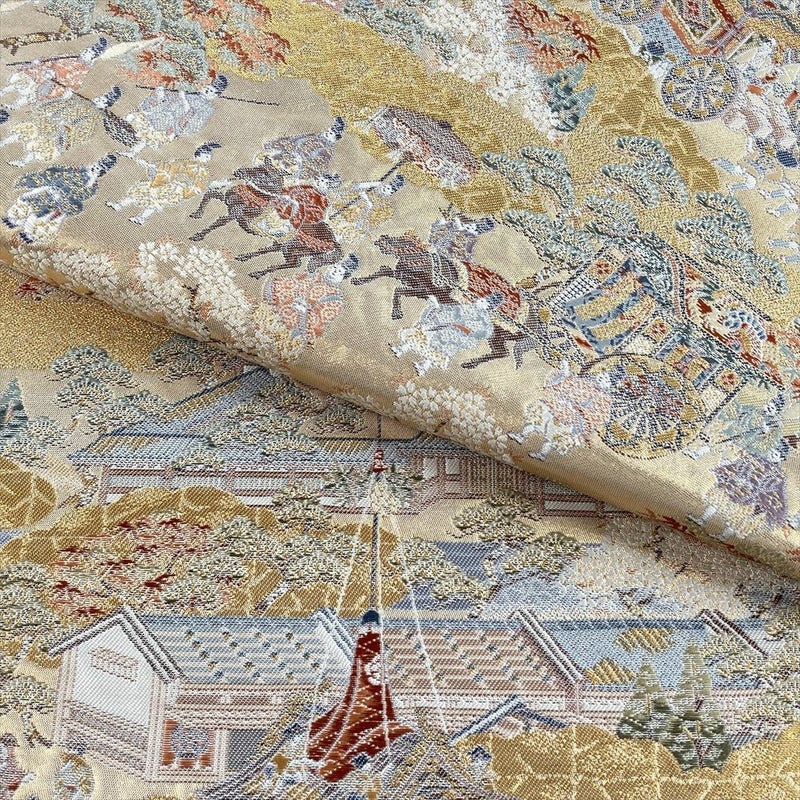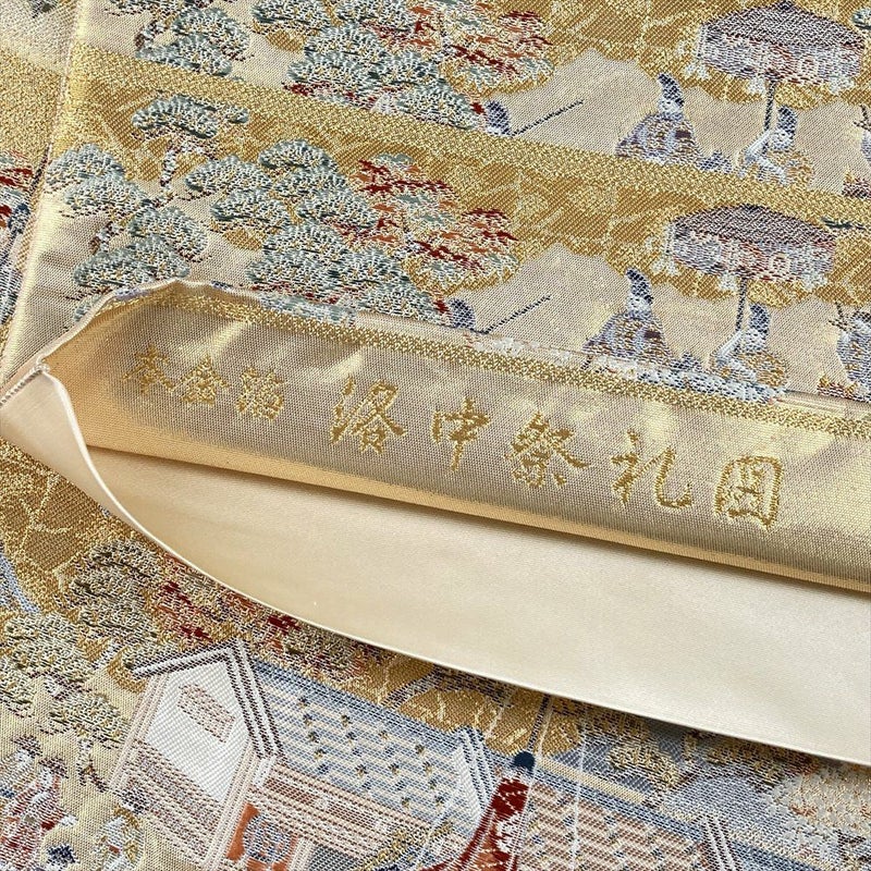 雅やかな洛中のお祭りの様子を、細部まで丁寧に織り上げた物語ある意匠。