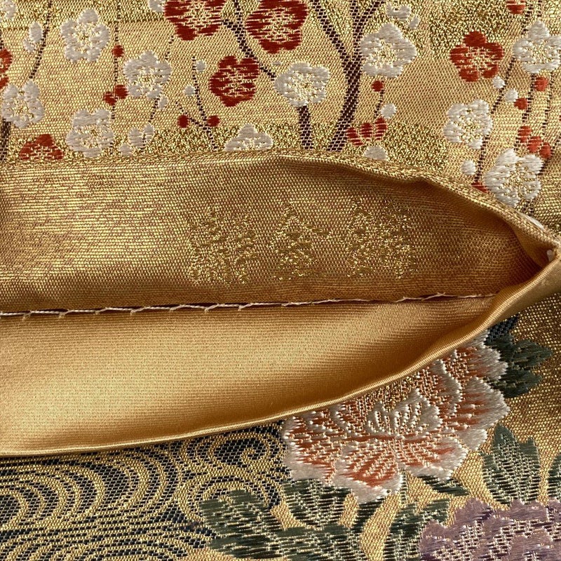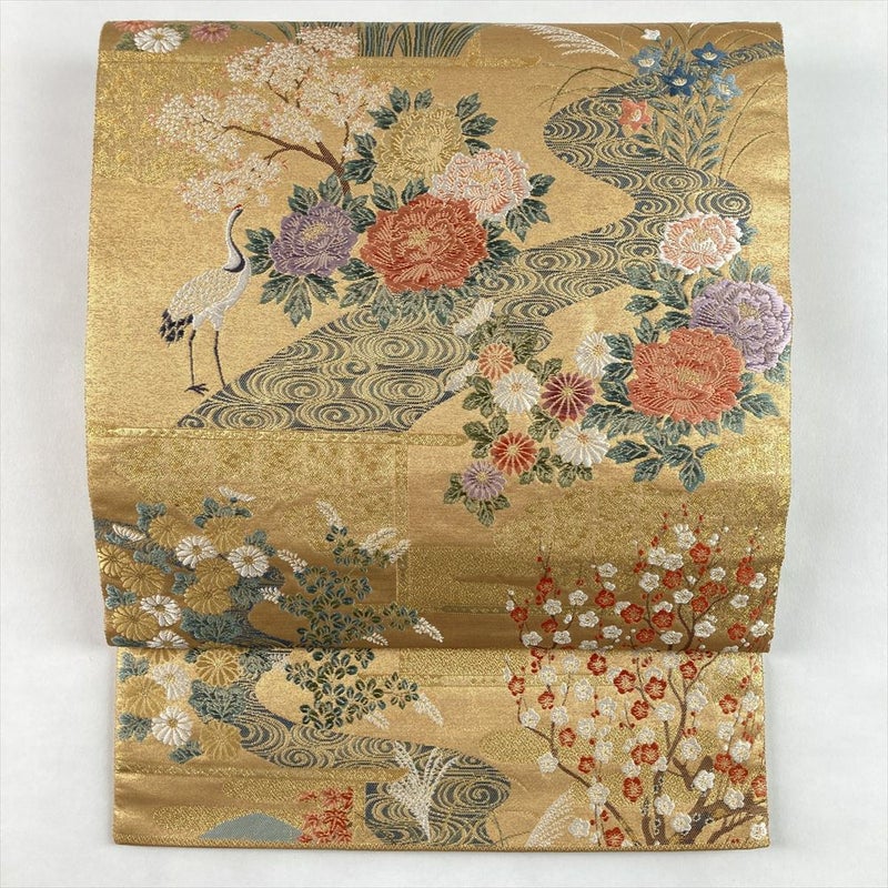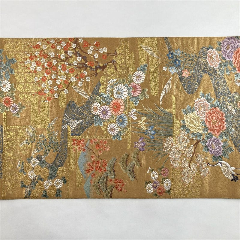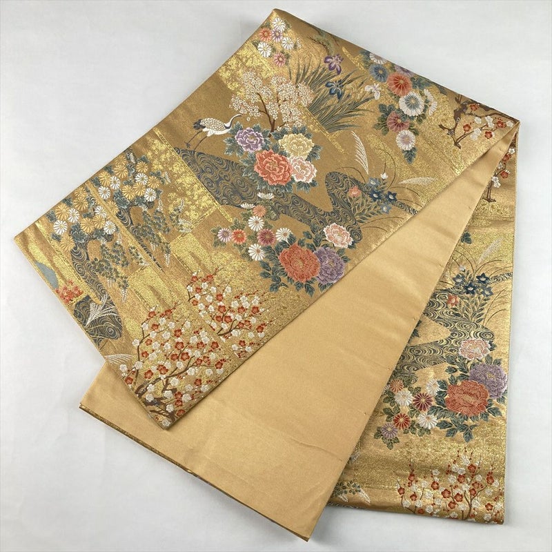 (中古)袋帯 金 セミフォーマル フォーマル 六通 織り引き箔 琳派 花鳥図 絹