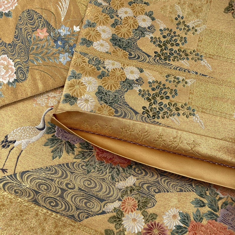 【色柄】金 セミフォーマル フォーマル 琳派 花鳥図 織り引き箔 六通